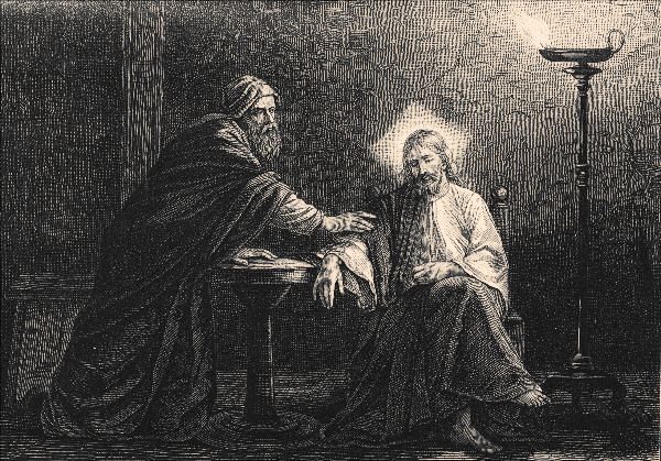 Jesus’ reply is what we would call a back-handed compliment. The fact that Nicodemus recognizes the divine origin of Jesus’ ministry means that Nicodemus must be born from above. Jesus personifies the kingdom of heaven, and seeing the kingdom of heaven requires being born from above: therefore, Nicodemus is born from above. If he were not born from above, he would not be able to see the kingdom. Nicodemus is unable to catch the enigmatic compliment, however, and gets hung up on the material meaning of birth.