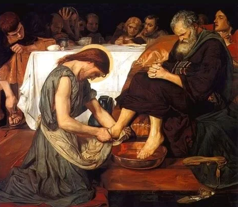 During the meal, Jesus got up and removed his outer robe and tied a towel around himself. He poured water into a basin and began to wash the disciples feet. Jesus did the foot washing in community to serve as a model for discipleship. Each disciple was loved and valued as a member of the community.